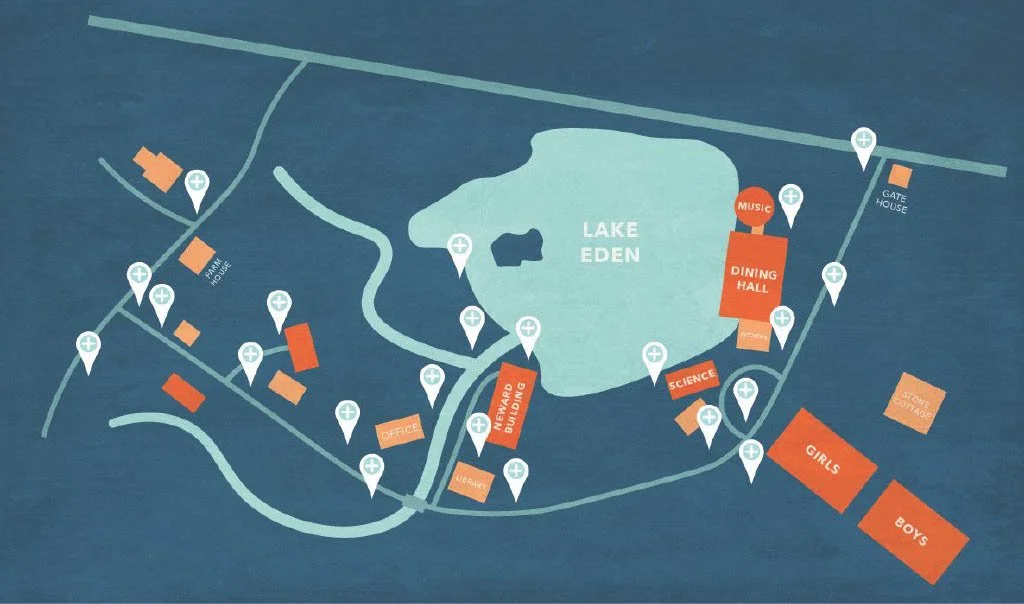Campus Maps: Overview of the campus, in original form & now.