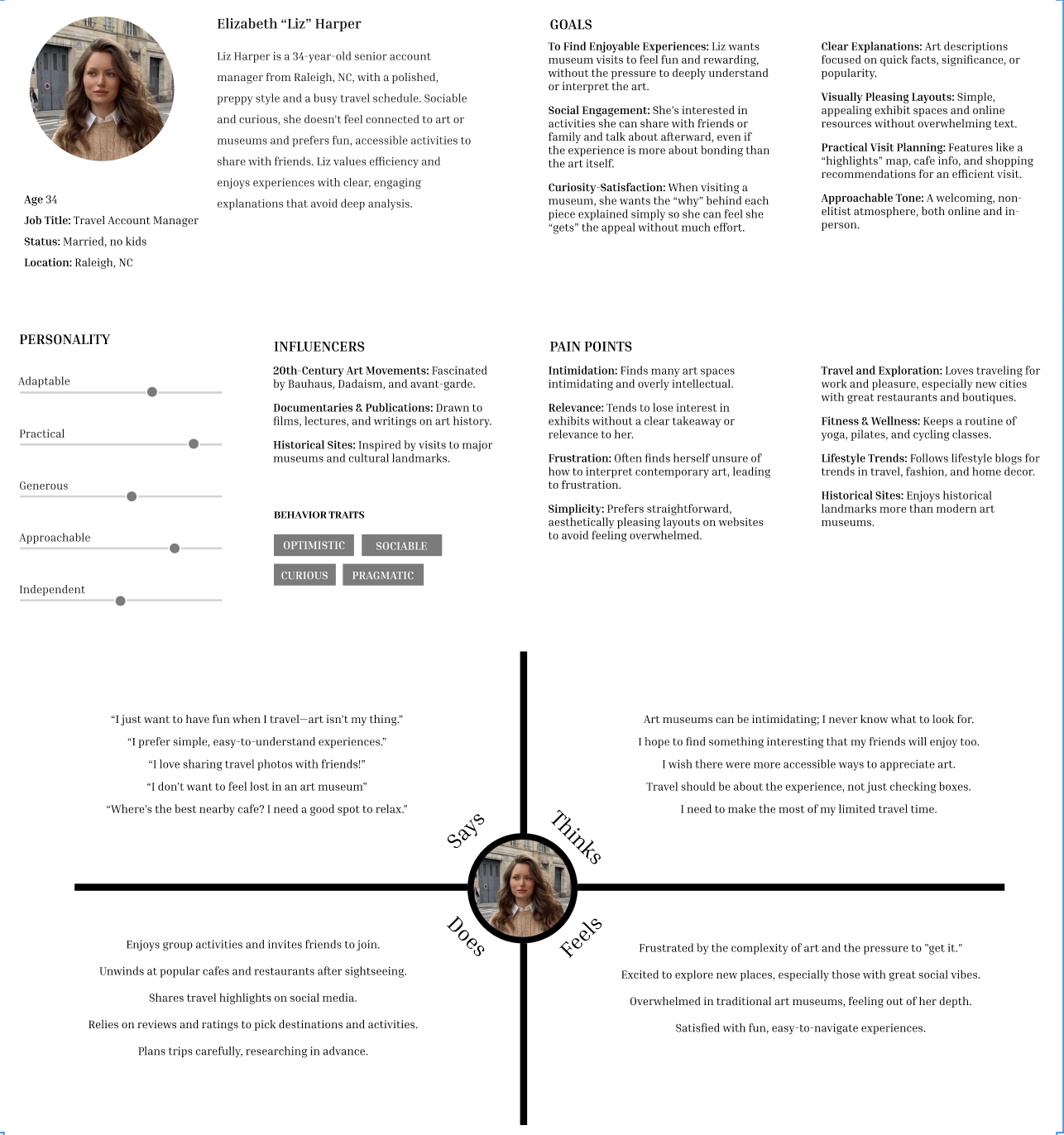 User Persona Development: Creation of two distinct user personas representing different types of visitors.